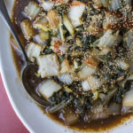 It takes just a few ingredients — garlic, ginger, soy sauce, hot chili sauce — to turn a variety of vegetables into a delicious Asian side dish. Because my husband is knee-deep in love with bok choy these days, that was the vegetable I picked to create my prosperity green vegetable dish. Bok choy is available in cute baby versions, but for this dish you can use the inexpensive bigger bunches. Look for it in well-stocked produce sections or Asian specialty stores.