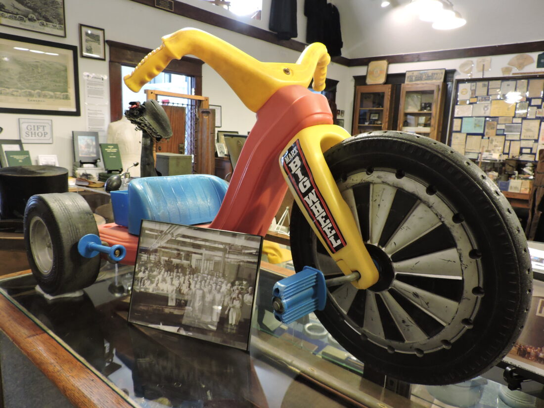 The upstairs of the building provides a glimpse into the county’s industrial legacy, featuring letterman jackets and yearbooks from local schools. The upstairs also chronicles the footprint left by countless businesses and organizations in the county.