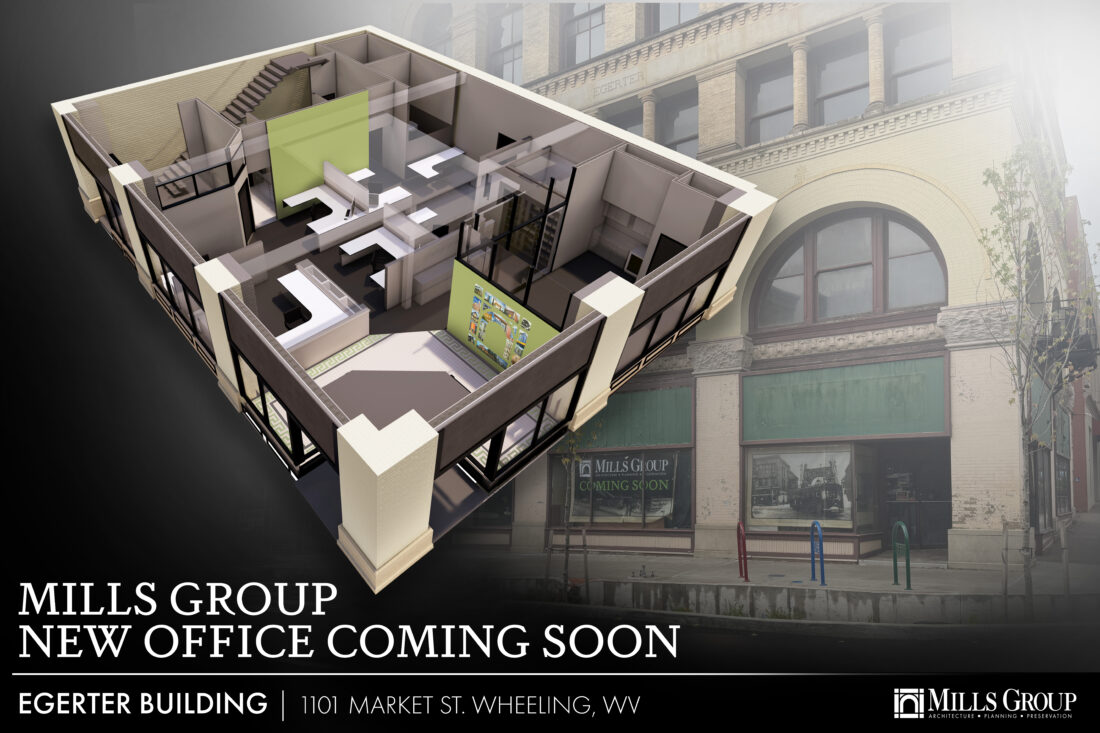 The Mills Group’s Wheeling offices are currently housed on the sixth floor of the Kaley Building on the corner of 14th and Chapline streets downtown. Although the firm intends to initially relocate its offices to the first floor of the Egerter Building this year, a future goal would be to potentially move the company’s offices to the fourth floor and make the street-level first-floor space available to other commercial tenants with mercantile or food service offerings.