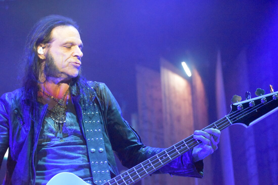 Bassist Chuck Garric performs with Alice Cooper on Wednesday, Oct. 1, 2025, at the Pavilion at Star Lake in Burgettstown, Pennsylvania. (Photo by Eric Ayres)