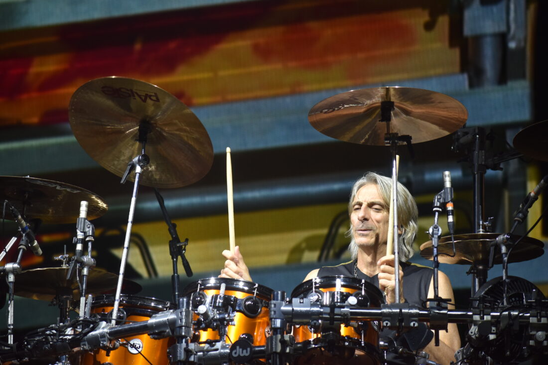 Drummer Scott Travis of Judas Priest performs on Wednesday, Oct. 1, 2025, at the Pavilion at Star Lake in Burgettstown, Pennsylvania. (Photo by Eric Ayres)