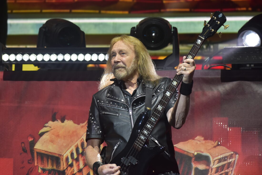 Ian Hill of Judas Priest performs on Wednesday, Oct. 1, 2025, at the Pavilion at Star Lake in Burgettstown, Pennsylvania. (Photo by Eric Ayres)