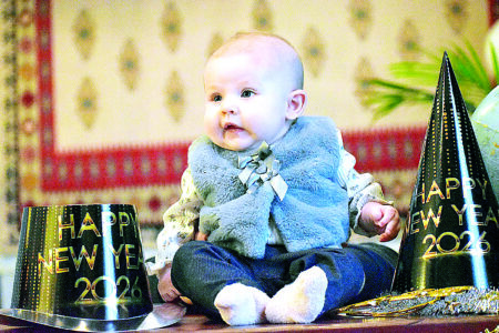 Bright eyed and eager to see what 2026 will bring is 3-month-old Skylar Wright, daughter of Rachel Krems and Tanner Wright of Wheeling. Between some winter naps and holiday visits with family this past week, Skylar spent some time preparing to celebrate her very first New Year.