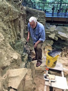 Photos Provided Meadowcroft’s director of archaeology, James Adovasio, prepares the excavation profile for DNA sampling.