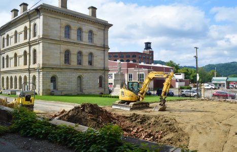 WHEELING — As crews began routine excavation work on a small lot next to the Soldiers and Sailors monument outside West Virginia Independence Hall in downtown Wheeling earlier this week, as plans are in the works to eventually integrate an outdoor children’s learning center on the site.