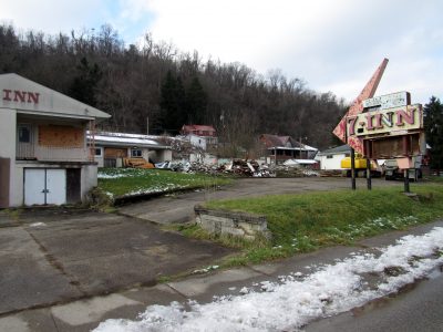 The former 7 Inn, located in the 1600 block of Belmont Street, is being demolished after many years of sitting empty and neglected.