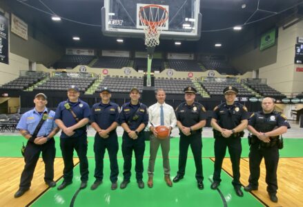 Police officers hitting the court include Ryan Moore, Josh Sanders, Cody Schwertfeger, Cayden Hennen, Zach Herron, Cory Rager, Brandon Stanley, John Wolf, Doug Somerville, Kevin Kuca, Collin Jamison and Robert Kovalyk.
