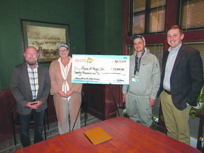 The House of Hagar’s Uplift OV Program receives a $20,000 grant from the Breaking Barriers for a Better Community fund. From left are Rob Sincavich, president of Breaking Barriers for a Better Community; Kate Marshall, facilitator at the House of Hagar; Ryan Adams of House of Hagar; and Chris Bucon, a member of Breaking Barriers for a Better Community.