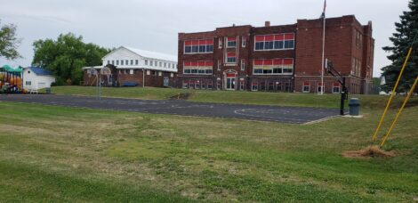 The former Belmont school building, right, is set to begin July 15. Parking for those renting the adjacent gym will be available in the grassy area in the foreground while work progresses.