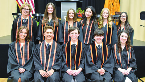 Pictured are the major award winners announced Sunday during The Linsly School’s commencement ceremony. Seated from left are Caroline Martin, Evan Zido, Dylan Lucas, Alex Michalo, and Caroline Higginbottom. Standing from left are Rocco D’Aquila, Zoe Zatezalo, Andrea Moreno Navarro, Heesoo Choi, Rachel Rutherford, and Olivia Rosenthal. (Photo Provided)