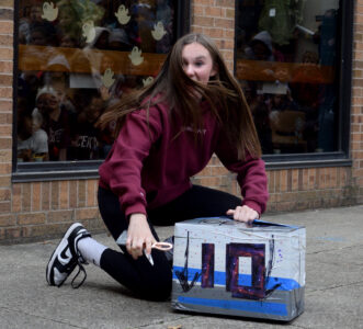 St. Michael Parish School once again held its annual tradition, a Pumpkin Drop contest to see which group of students could best protect their pumpkin from a toss off the roof of the school. (Photos by Derek Redd)