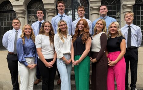Wheeling Central Catholic High School has announced its 2025 Homecoming Court. The Homecoming Queen will be crowned on Friday, during the Maroon Knights’ game against Brashear at Bishop Schmitt Field at Wheeling University. The Homecoming King will be announced on Saturday during the dance, which will be held at Oglebay Park’s Pine Room. Front row, from left, are Addie Payton, Erin Maxwell, Alexa Loy, Kaitlin Brodegard, Seneca Heller and Elizabeth Clark. Back row, from left, are Carver Bolon, Matthew Criniti, Max Olejasz, Luke Magruder, Jeffrey Donzella and Luke Zoeckler. (Photo Provided)