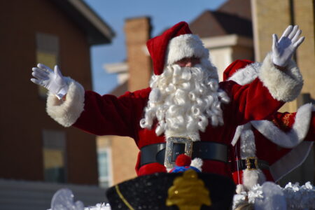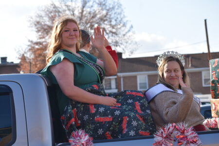 MOUNDSVILLE – Spectators lined Jefferson Avenue in Moundsville on Saturday afternoon for the 55th annual Marshall County Christmas Parade, presented by the Marshall County Chamber of Commerce and sponsored by WesBanco. Unseasonably warm and sunny weather greeted parade goers, who collected candy and cheered on festive participants in more than 70 parade unit entries in the holiday extravaganza.