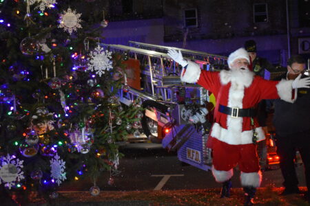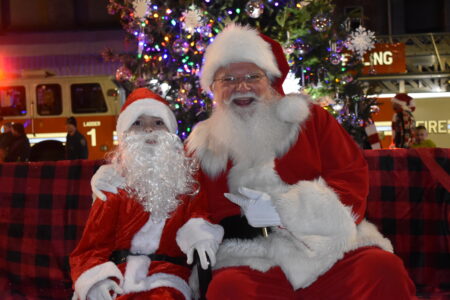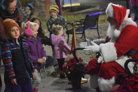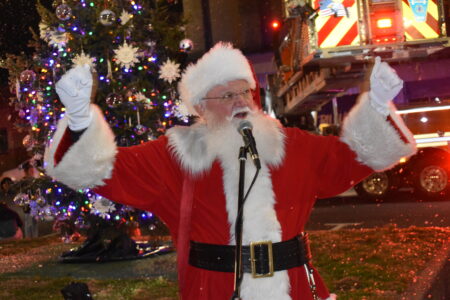 - Santa arrives to greet the crowd assembled at Winter on the Plaza in Wheeling on Wednesday night, when the Friendly City officially kicked off the holiday season. (Photo by Eric Ayres)