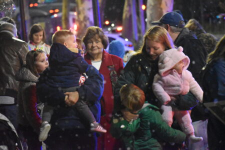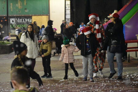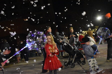 WHEELING – The city of Wheeling officially kicked off the holiday season on Wednesday night with the annual Winter on the Plaza. Santa arrived to light the Christmas tree, and scores of families gathered to take part in activities, sip hot chocolate and celebrate the beginning of the season under squalls of simulated snow flurries.