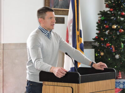 State Sen. Ryan Weld, R-Brooke, reminds those gathered Tuesday for Weirton's Veterans Day service of the importance of the work of all veterans in serving the nation.
