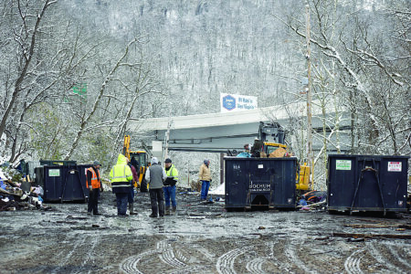 Dozens of Dumpsters of leftover items were hauled away when cleanup began Tuesday. Workers were cleaning up items that were left both in the encampment and that were found over the hill along the bank of Wheeling Creek.
