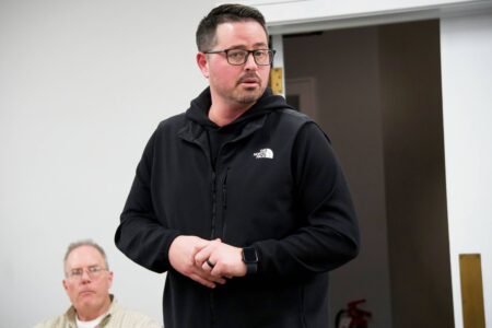 St. Clairsville Recreation Department director Eric Gay informs city council that Oglebay Institute’s Stifel Fine Arts Center and St.Clairsville Recreation Department are entering a partnership to bring more events to the city. (Photo by Gage Vota)