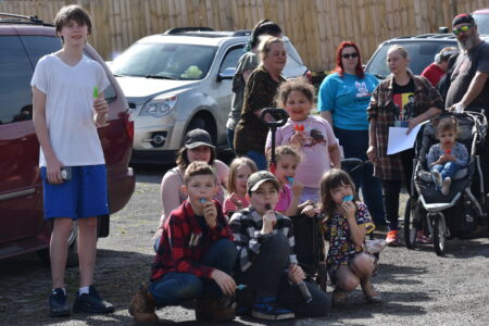 - Children enjoyed colorful frozen treats in the unseasonably warm weather Saturday while waiting in line outside the North Wheeling Community Dream Center for the annual Easter food distribution. (Photo by Eric Ayres)