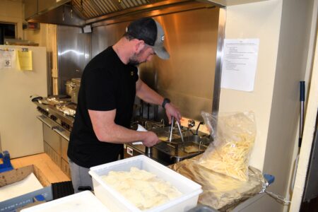 Anthony Marchesi drops fish filets and fries into the deep fryer during the Ash Wednesday fish fry at St. Michael Parish School. Ash Wednesday signified the start of the Lenten season, which also heralded the return of fish frys throughout the Ohio Valley. (Photo by Derek Redd)