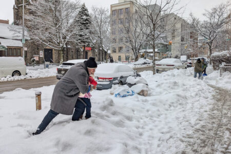 NEW YORK (AP) — Light snow fell over parts of the Northeast on Wednesday as people navigated to work and school after a massive storm that dropped piles of powder on streets and sidewalks from Maryland to Maine.