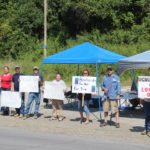 Photo by Bruce Crawford Dominion employees locked out of work picket outside the company’s Hastings plant in Wetzel County. A mediation session Thursday in Clarksburg produced no results.