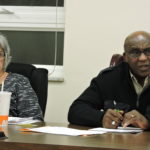 Photo by Alan Olson Moundsville City Manager Deanna Hess and Mayor Eugene Saunders discuss matters during a committee meeting.