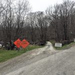 Signs warn drivers at the Burnsville Ridge Road mouth of Spruce Road, which East Finley Township supervisors took the step of closing on Tuesday because of natural gas processor Equitrans’ failure to make repairs to the road in line with conditions on its plans for a metering station on property there. Photo by Gideon Bradshaw