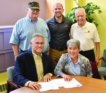 Making plans for the Undo’s Upper Ohio Valley Italian Heritage Festival Veterans Appreciation Ceremony scheduled for 11 a.m., Saturday, on the main stage at Heritage Port are (seated) speakers for the event, Veterans Wayne Barte of Wheeling and SFC Cindy Barone of Pittsburgh, and, standing from left: committee members, John Nanny, past commandant Department of West Virginia Marine Corps League and Sam Nazzaro Sr. of Wheeling, and Michael Novotney, veterans outreach specialist for the Wheeling Vet Center - U.S. Department of Veteran’s Affairs, will be serving as this year’s Master of Ceremonies.