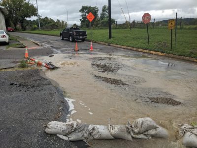 City workers clean up floodwaters on Marshall Street near Embers Lounge in McMechen. Wednesday’s rains from the remnants of Hurricane Ida led water to rise and cover the streets in several areas of the Ohio Valley.