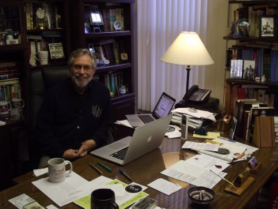 Photo by J.D. Long - The Rev. William Webster sits at his workplace at Grace Presbyterian Church in Martins Ferry where he continues to keep an upbeat attitude after a year-long battle with COVID-19.