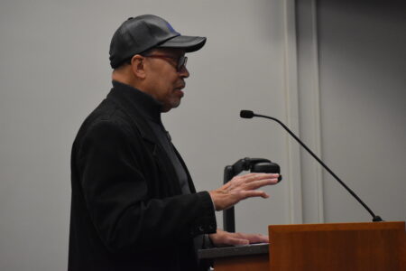 Darryl Clausell, president of the West Virginia Chapter of the NAACP and chairman of the Ohio County Chapter of the NAACP, addresses members of Wheeling City Council on Tuesday night before legislation to adopt the CROWN Act was unanimously approved.