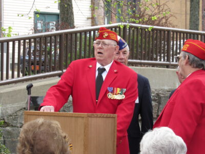 The pedestal was erected beside the Gold Star Family Memorial, a monument that Nanny himself was integral to bringing to the waterfront. In addition to his family, dozens of people attended the ceremony organized by veteran Steve Duncil with help from the VFW Post 4442 and Marine Corps League.