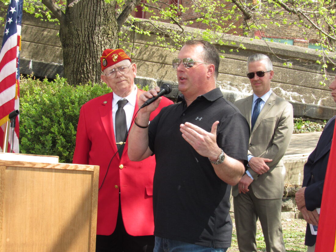 Duncil also served as the event’s emcee and remarks were made by Wheeling Mayor Glenn Elliott, veteran John Looney, U.S. Marine Corps Maj. Gen. Austin Renforth, veteran David Schoenian and two of Nanny’s children, Beth Gerken and Jeff Yoakum.