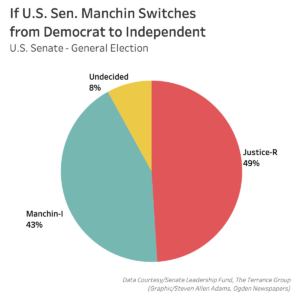 CHARLESTON — New polling released Thursday shows that even if he switches parties from Democratic to independent, re-election to the U.S. Senate could be tough for Joe Manchin.