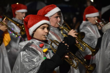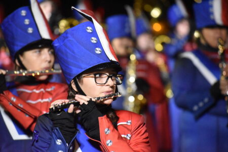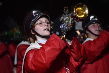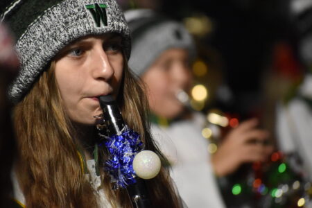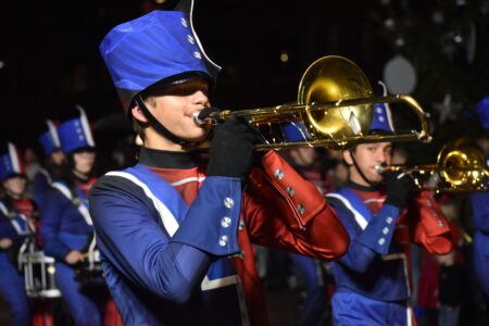 - The Wheeling Park High School Patriot Band get the crowd into the holiday spirit, performing Christmas favorites and anchoring the parade right before Santa Claus made his way up Main Street. (Photos by Eric Ayres)