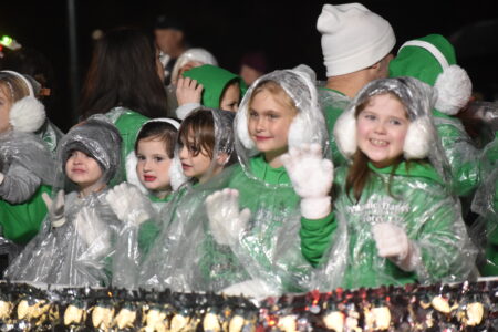 - Youngsters on the Liberty Distributors float showed a lot of enthusiasm and heart, despite their “Grinchy” appearance. (Photos by Eric Ayres)