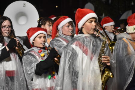 - Members of the Bellaire Big Red High School Marching Band performed a selection of toe-tapping holiday favorites during the parade. (Photos by Eric Ayres)