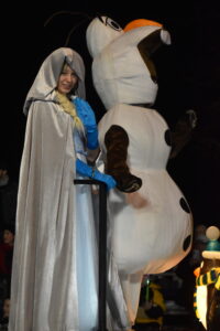 - Coleman’s Fish Market in Wheeling is famous for fresh fish, but its float was definitely “Frozen,” featuring Elsa and Olaf. (Photos by Eric Ayres)