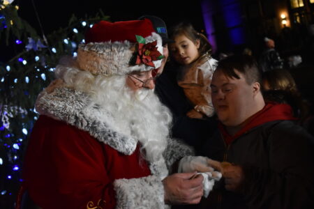 Santa Claus stepped off his float at the end of the parade to light the Main Street Bank Christmas Tree and greet the young and the young at heart. (Photos by Eric Ayres)