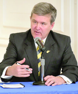 Secretary of State Mac Warner, seen here speaking during a governor's briefing, said he believes the 2020 election was stolen from former president Donald Trump. (Photo courtesy of W.Va. Governor's Office)