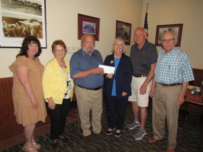 (Photo by Shelley Hanson) The Marshall County Public Library officials and board members receive a $293,531 check bequeathed to the library by the late Harold Vitalie, a longtime Marshall County educator who died in 2023. From left are treasurer Beth Philips, board member Karen Coffield, Vitalie’s former student Mike Ramsden, library Director Susan Reilly, board member Mike Ferro and board member Jim Stultz.