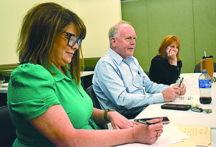 Greater Wheeling Sports and Entertainment Authority Executive Director Kelly Tucker, Wheeling City Manager and GWSEA Board Chairman Robert Herron and Fiscal Officer Nancy Hughes, from left, attend the monthly meeting of the GWSEA board on Tuesday at WesBanco Arena.