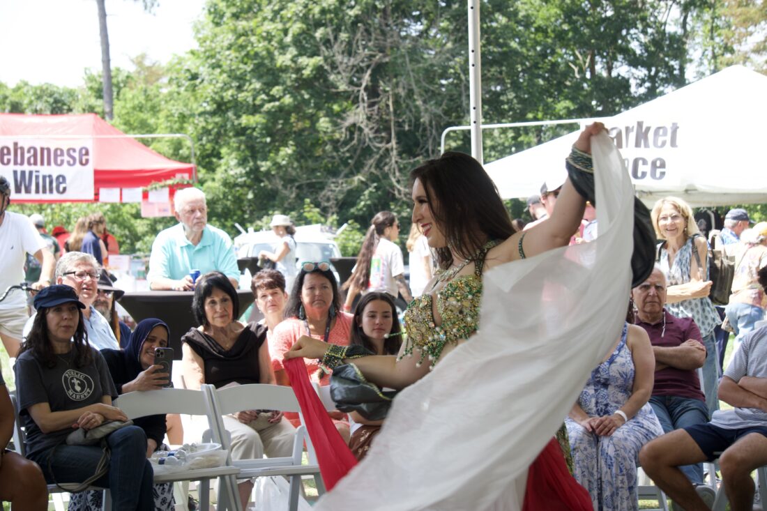 Shish kababs, shawarma, stuffed grape leaves, tabouli, hummus, meat and spinach pies, Lebanese pastries and zaatar bread were all for sale to enjoy while listening to music, watching Athena Shimmy the belly dancer perform and exploring a marketplace selling various items such as clothing, can koozies, dry goods, Lebanese spices, specialty items and souvenirs from Lebanon.