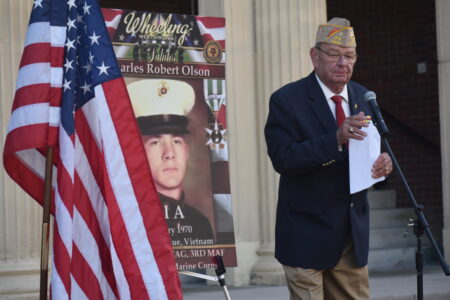 Wheeling VFW Vice Commander Chuck Ryan, also a Marine and Vietnam veteran, noted that Olson’s service in Vietnam earned him several prestigious medals, including a Purple Heart and Bronze Star.