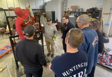 - GRIT Fire Training instructor Sean Sokolowski talks to firefighters from around West Virginia during training on Wheeling Island.