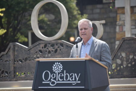 Bob Peckenpaugh, president and CEO of the Wheeling Park Commission, speaks during a celebration of renovations to Oglebay Park Resort’s Wilson Lodge in August 2024. (File Photo)