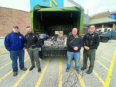Photo by Derek Redd Members of the Ohio County Sheriff’s Office and Valley Grove and Triadelphia volunteer fire departments stand in front of one of the trucks collecting food for Ohio County flood victims. Pictures are, from left, Valley Grove volunteer firefighter Craig Blacker, OCSO Col. Austin Zitzmiller, Tr