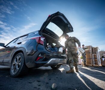 Members of the West Virginia National Guard assist Mountaineer Food Bank in distributing more than 12,000 pounds of food to families at Doddridge County Park on Wednesday. (Photo Courtesy of W.Va. National Guard )