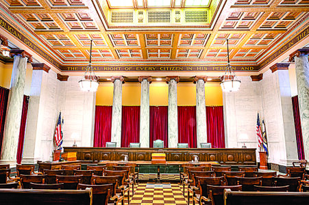 The West Virginia Supreme Court of Appeals Courtroom in the WV state capitol building in Charleston, WV. September 26, 2019 (J. Alex Wilson)